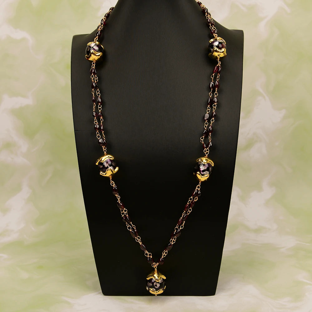 Natural Purple Murano Glass,Red Garnet Rosary Necklace